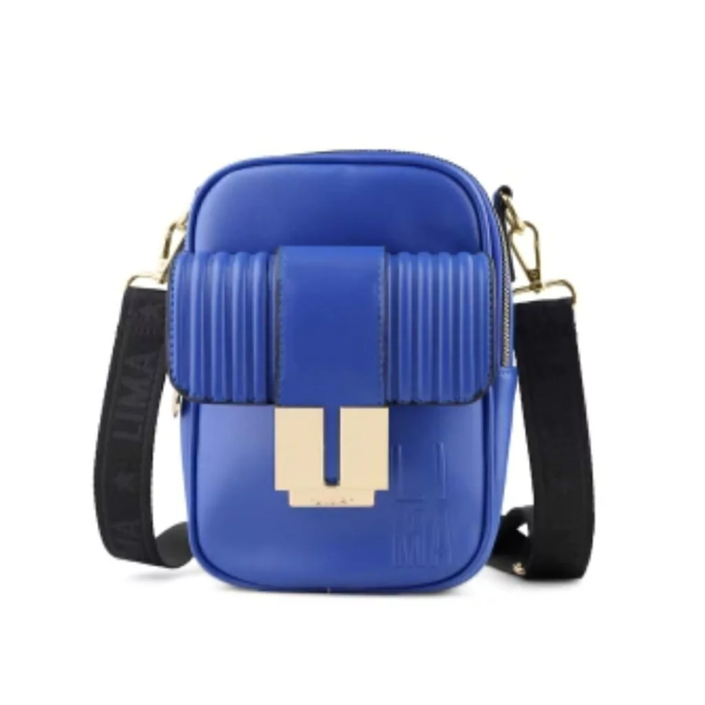 BANDOLERA DE CUERO SINTETICO LIMA 2 CIERRES 20X15X7CM COLOR AZUL ( DDM ) (F209D)