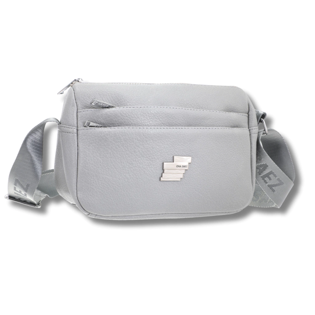 BANDOLERA ONA SAEZ DE CUERO SINTETICO 4 CIERRES 16X23X10CM COLOR GRIS (OS1007C)
