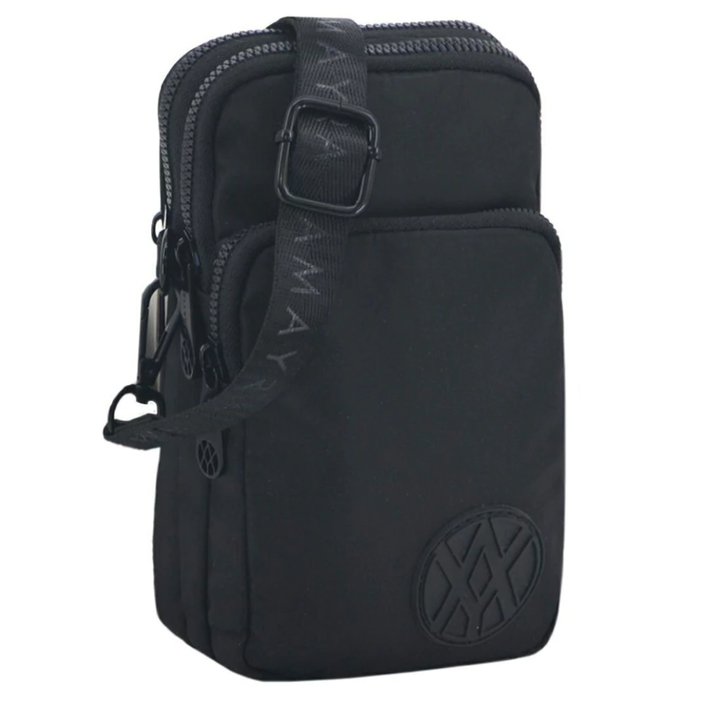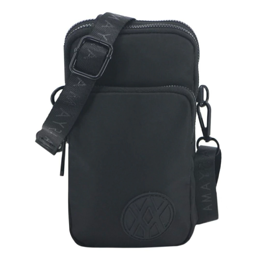 BANDOLERA PORTACELULAR AMAYRA DE NYLON 3 CIERRES 20X12X6 COLOR NEGRO PRECIO UNITARIO (67B9431)