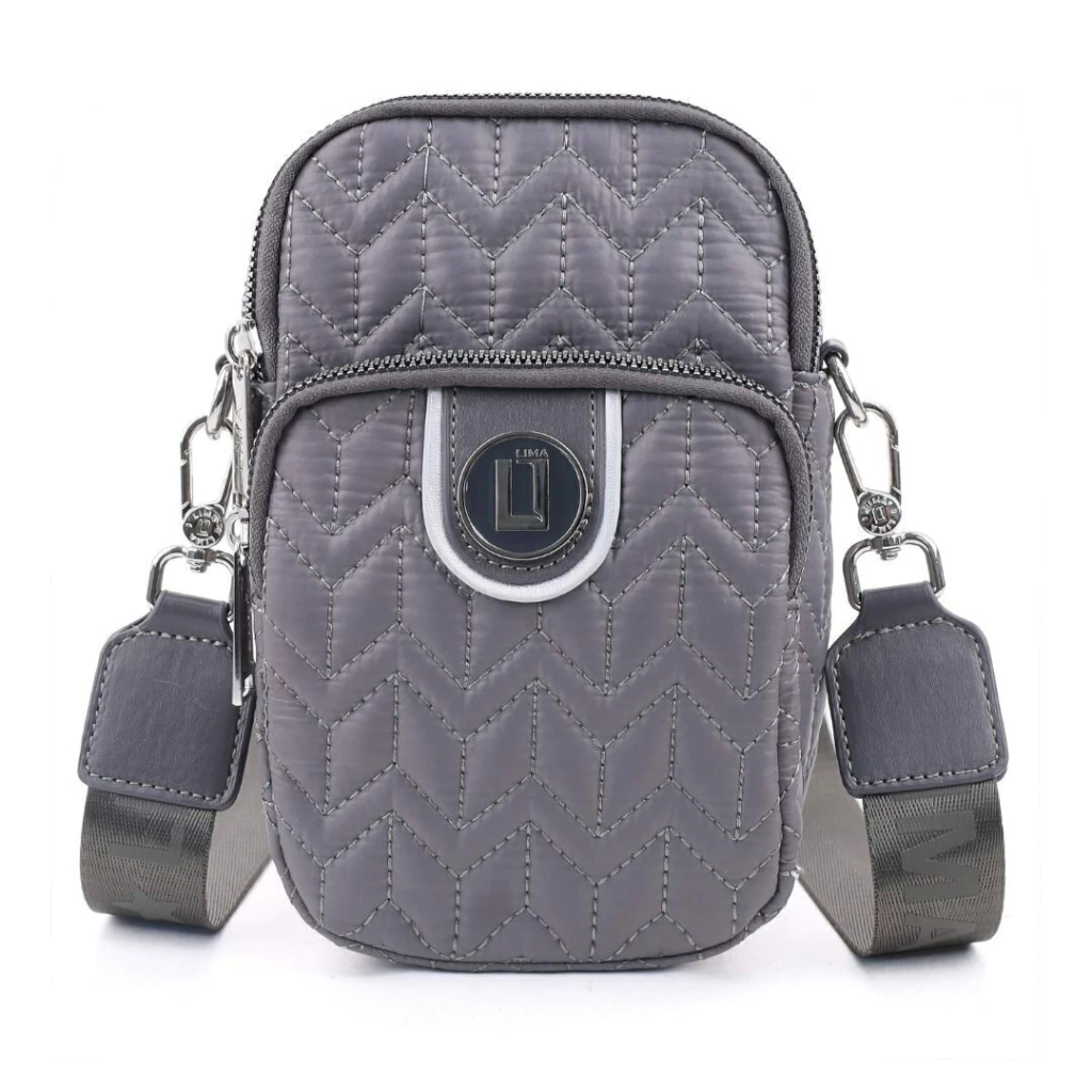 BANDOLERA PORTACELULAR LIMA DE TELA ENGOMADA 3 CIERRES 21X14X6 COLOR GRIS PRECIO UNITARIO (F242B)