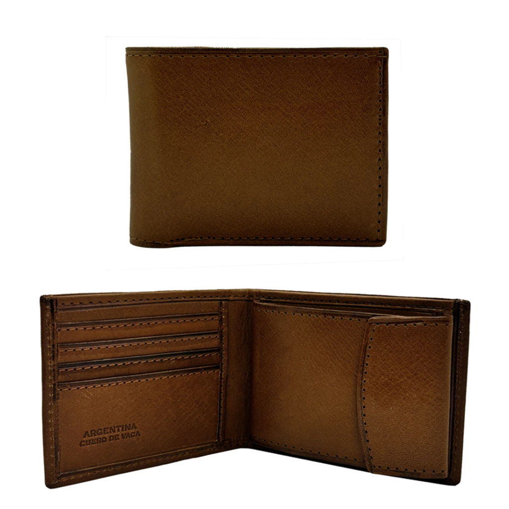 BILLETERA DE CUERO VACUNO PREMIUM CON VOLANTE DESPLEGABLE 11X9X3CM COLOR SUELA PRECIO UNITARIO (JL318B)