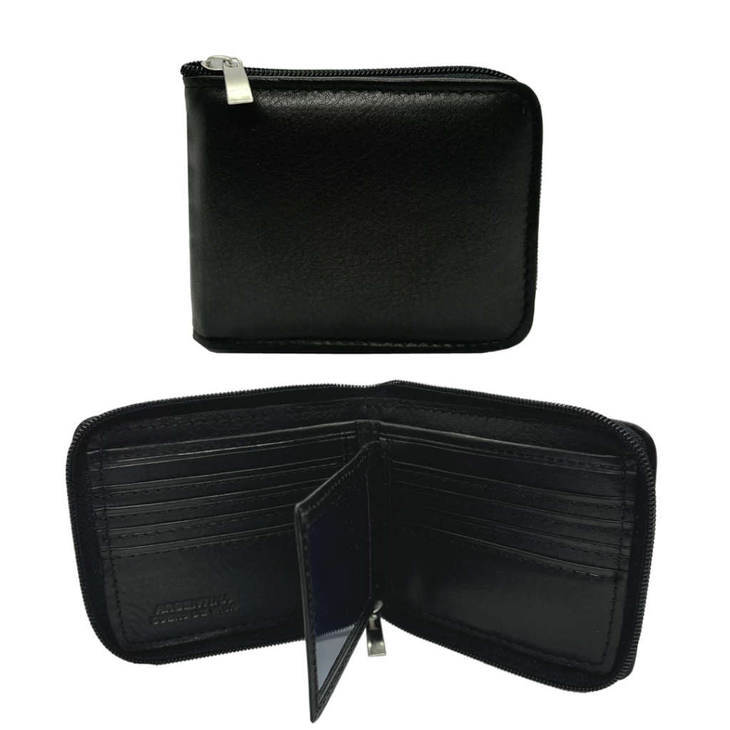 BILLETERA DE CUERO VACUNO PREMIUM CON VOLANTE Y CIERRE 11X9X3CM COLOR NEGRO PRECIO UNITARIO (JL915A)
