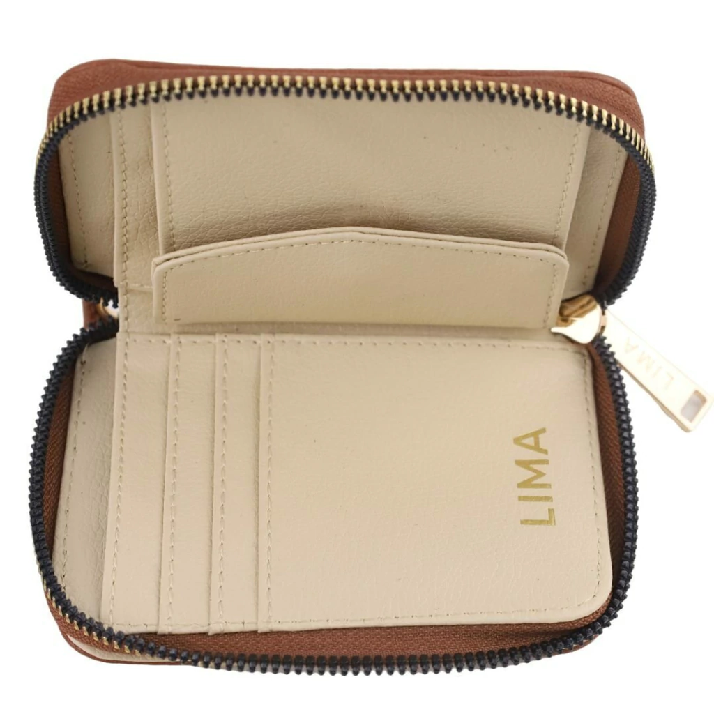 BILLETERA LIMA DE CUERO SINTETICO CON TARJETERO Y LLAVERO 12X10X4 COLOR CARAMELO PRECIO UNITARIO (I470C)