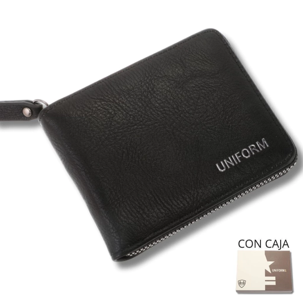 BILLETERA UNIFORM DE CUERO SINTETICO CON CIERRE 9X11CM COLOR NEGRO (12776A)