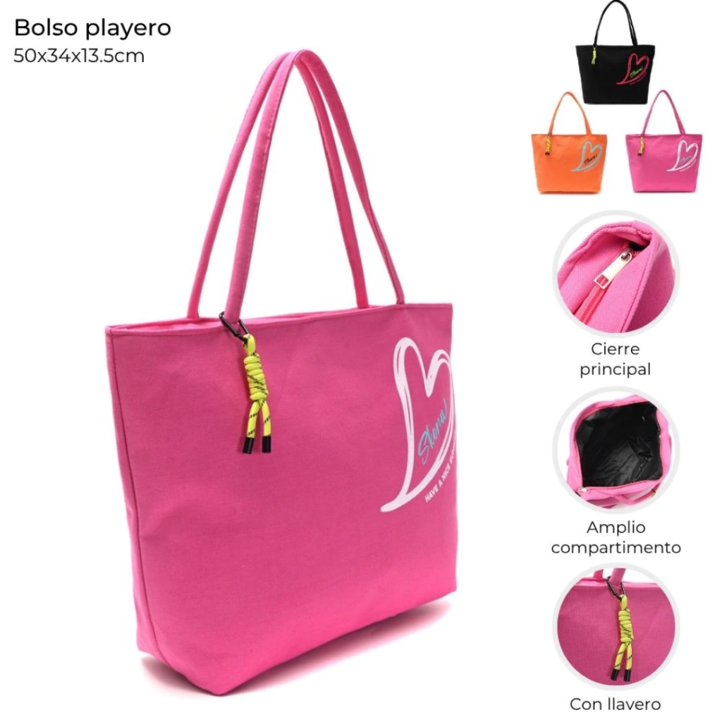 BOLSO PLAYERO SKORA ESTAMPADO 50X33X13CM COLOR FUCISA (41078B)