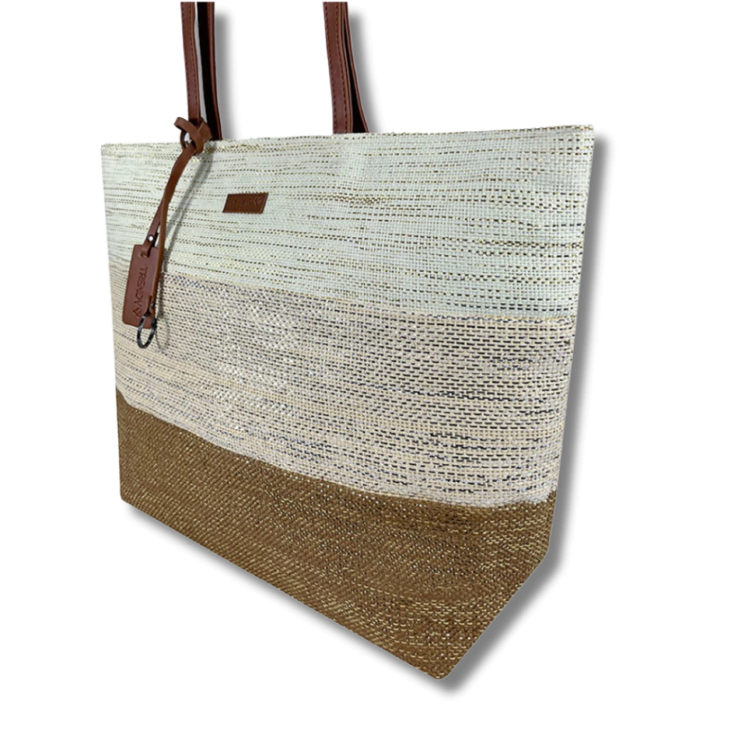 BOLSO PLAYERO TRENDY DE RAFIA CON BRILLOS 35X50X14CM COLOR MARRON (28085B)