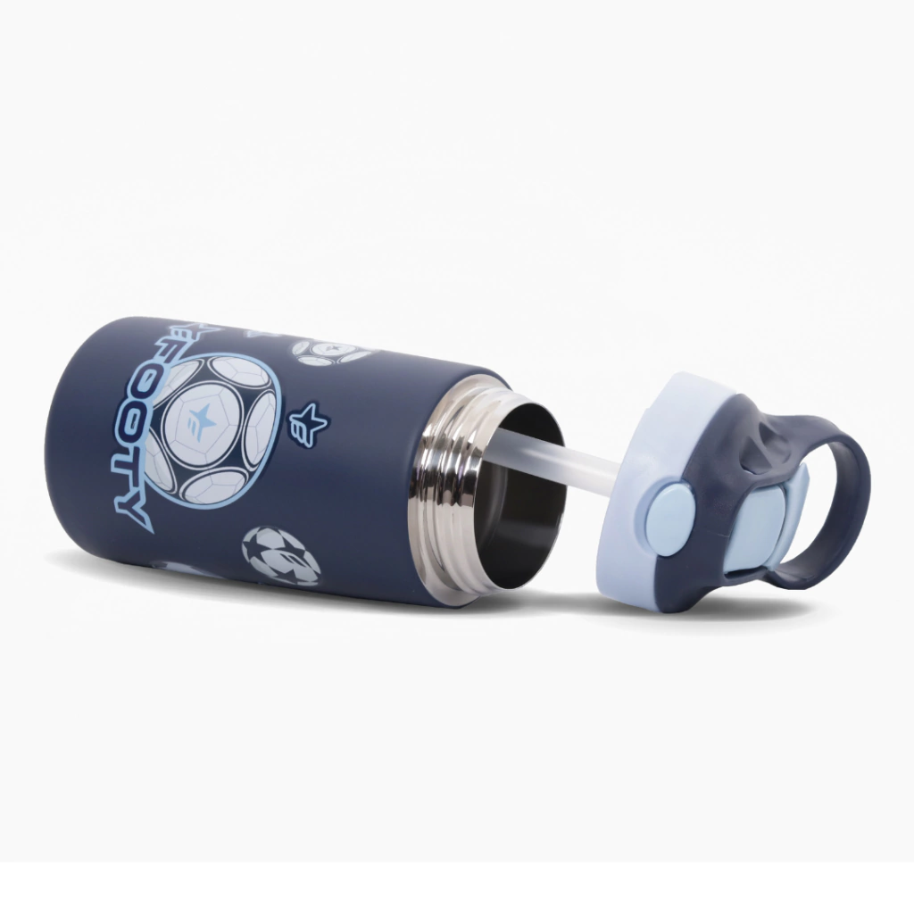 BOTELLA FOOTY 400ML DE ACERO 18X7X7CM | BOCA DE SILICONA | ASA DE AGARRE | PELOTA AZUL (BOTERM174B)