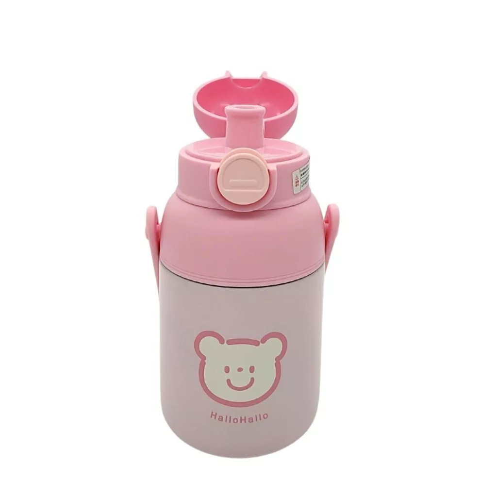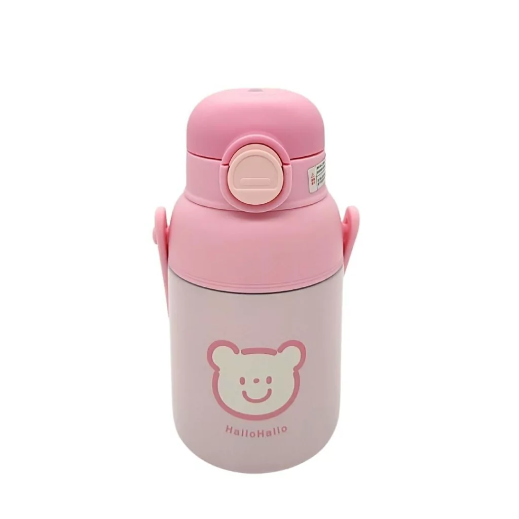 BOTELLA TERMICA DE ACERO INOXIDABLE CON PICO 600ML ESTAMPA OSO COLOR ROSA (BTS) (P2227C)