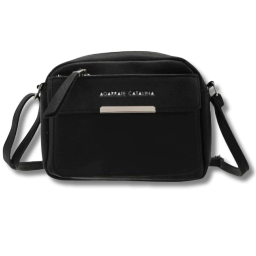 CARTERA BANDOLERA AGARRATE CATALINA DE CUERO SINTETICO 3 CIERRES 16X21X7CM COLOR NEGRO (ACV26340A)