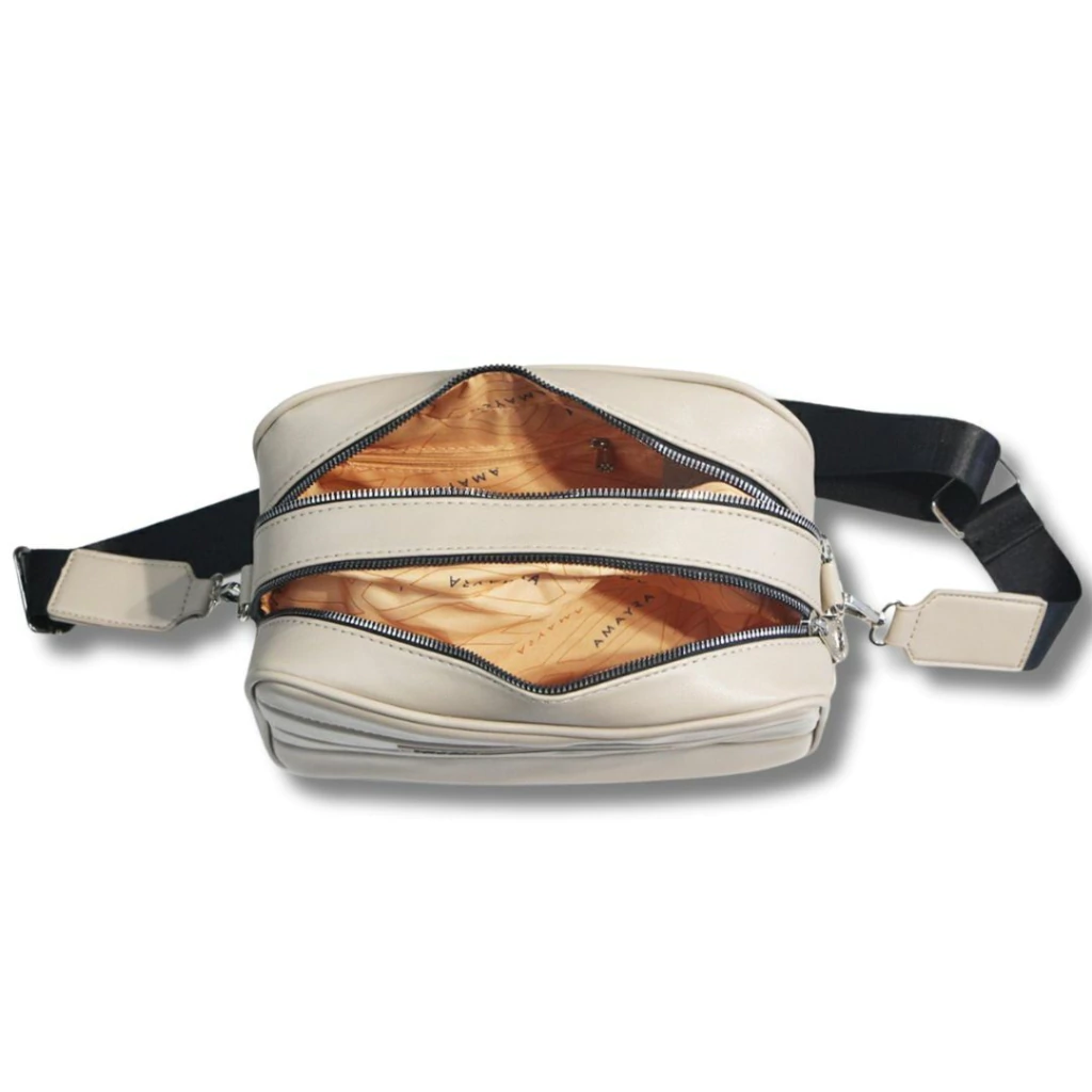 CARTERA BANDOLERA DE CUERO SINTETICO AMAYRA 16X24X10CM COLOR BEIGE (67C26253)