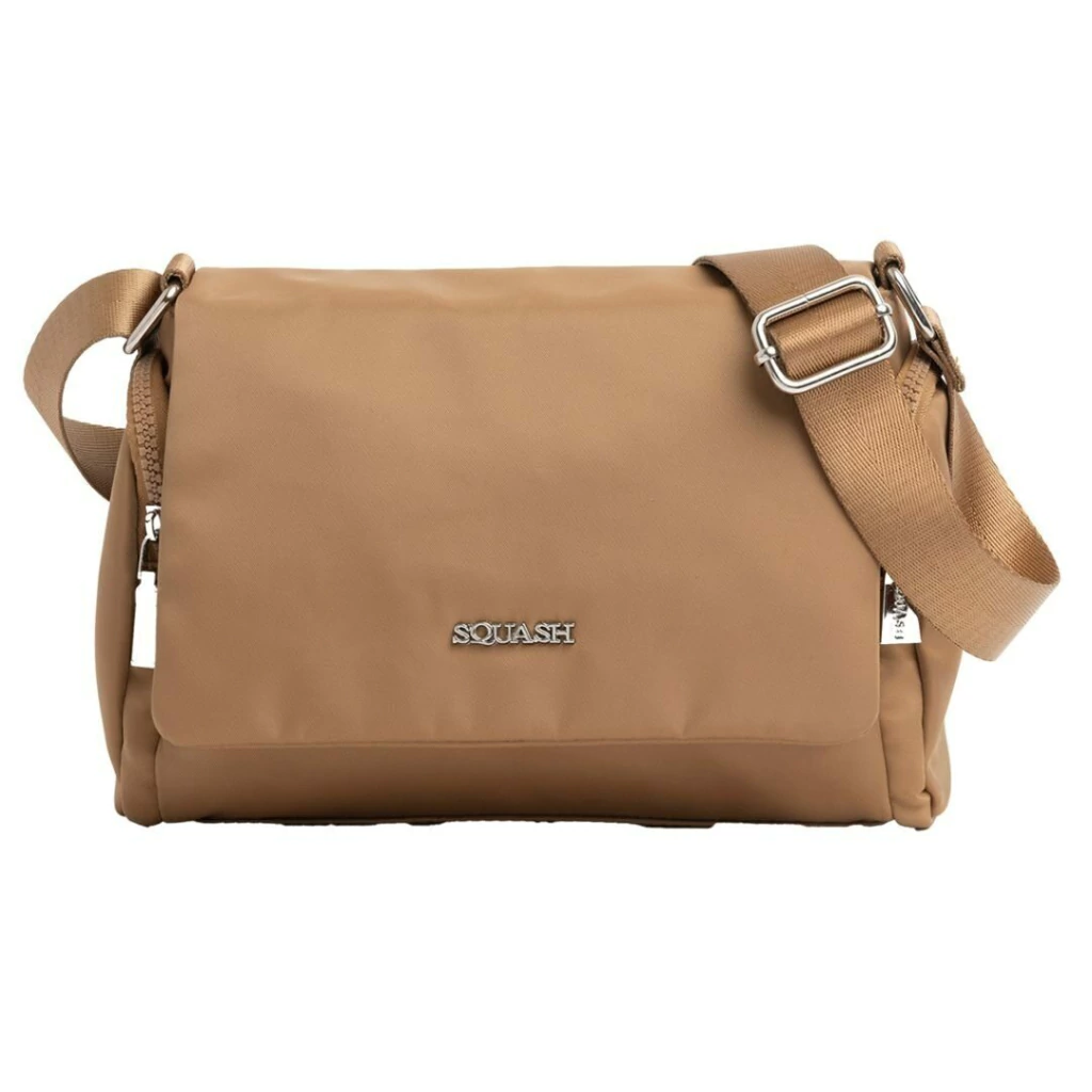 CARTERA SQUASH DE NYLON 3 CIERRES 28X18X12 COLOR CAMEL PRECIO UNITARIO (40234B)