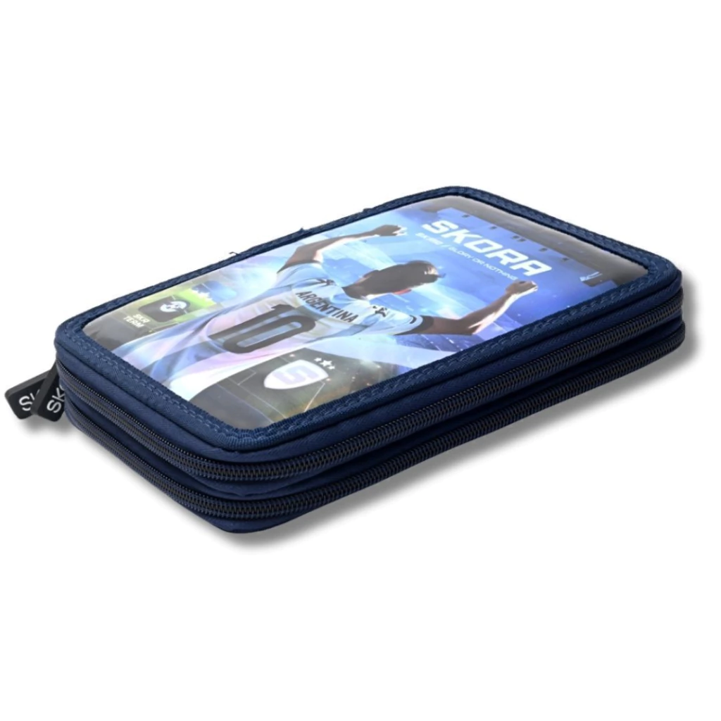 CARTUCHERA DE DOS PISOS SKORA LETS PLAY 2 CIERRES 20X14X4CM ESTAMPA FUTBOL COLOR AZUL (42131)