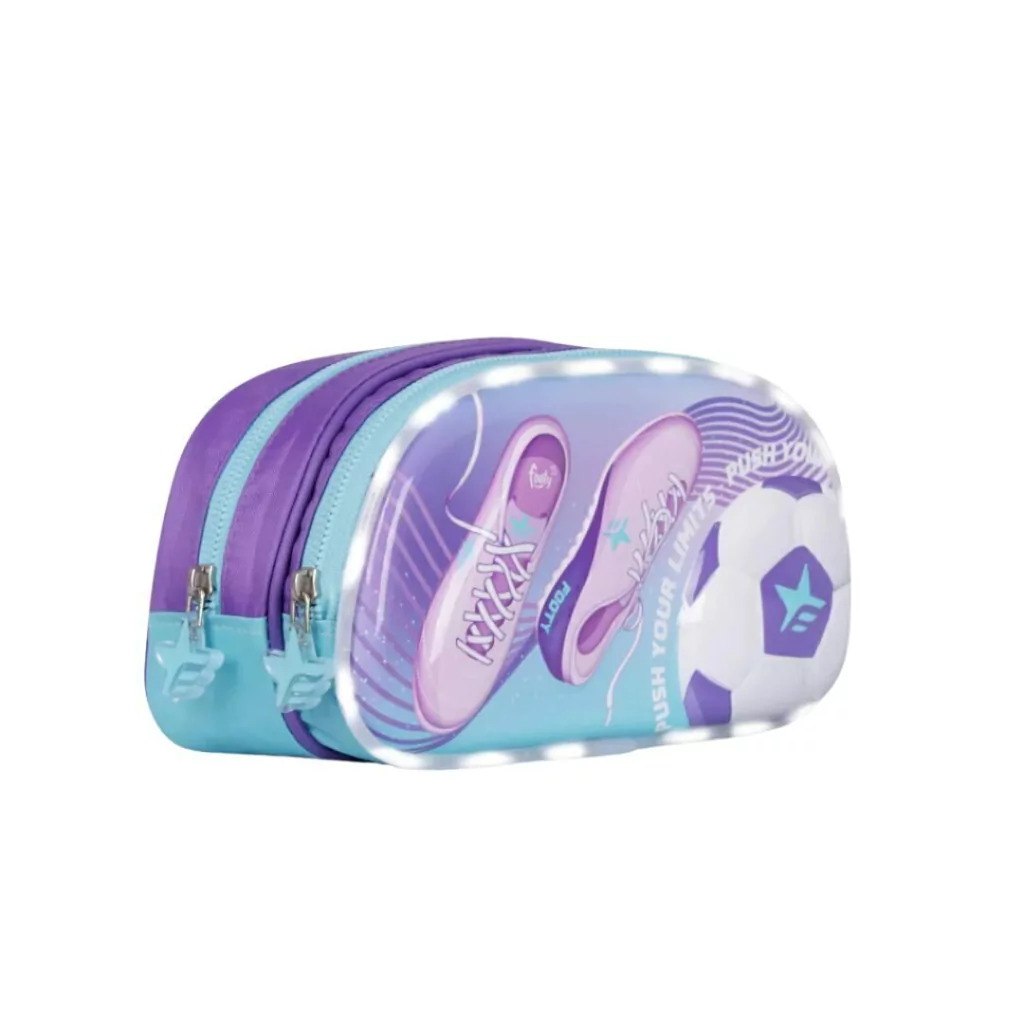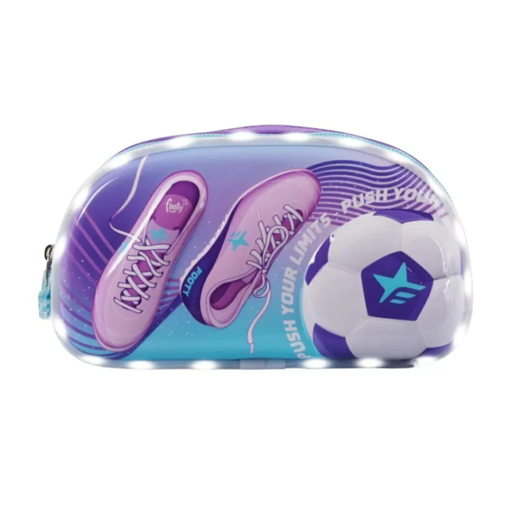 CARTUCHERA FOOTY FUTBOL FEM 2 CIERRES 23X13X9CM LUZ LED BASE CELESTE PRECIO UNITARIO (BTS) (F62092B)