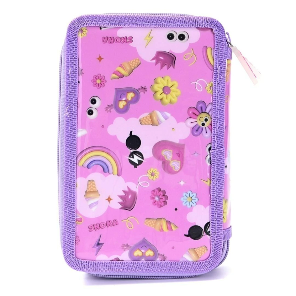CARTUCHERA SKORA DOS PISOS LIFE IS COOL BASE HOLOGRAFICA 20X14X6 COLOR ROSA PRECIO UNITARIO (BTS) (37796)