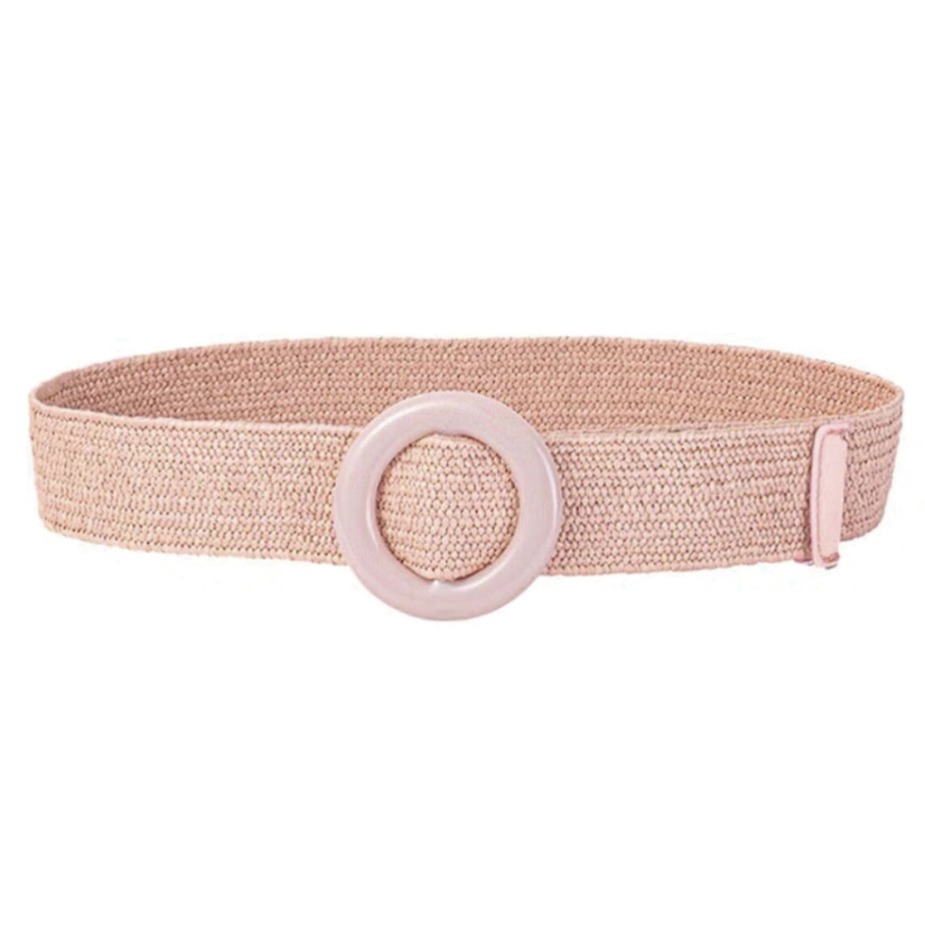 CINTURON RAFIA ELASTIZADO TRENDY HEBILLA REDONDA 93X5CM COLOR ROSA (51715B)