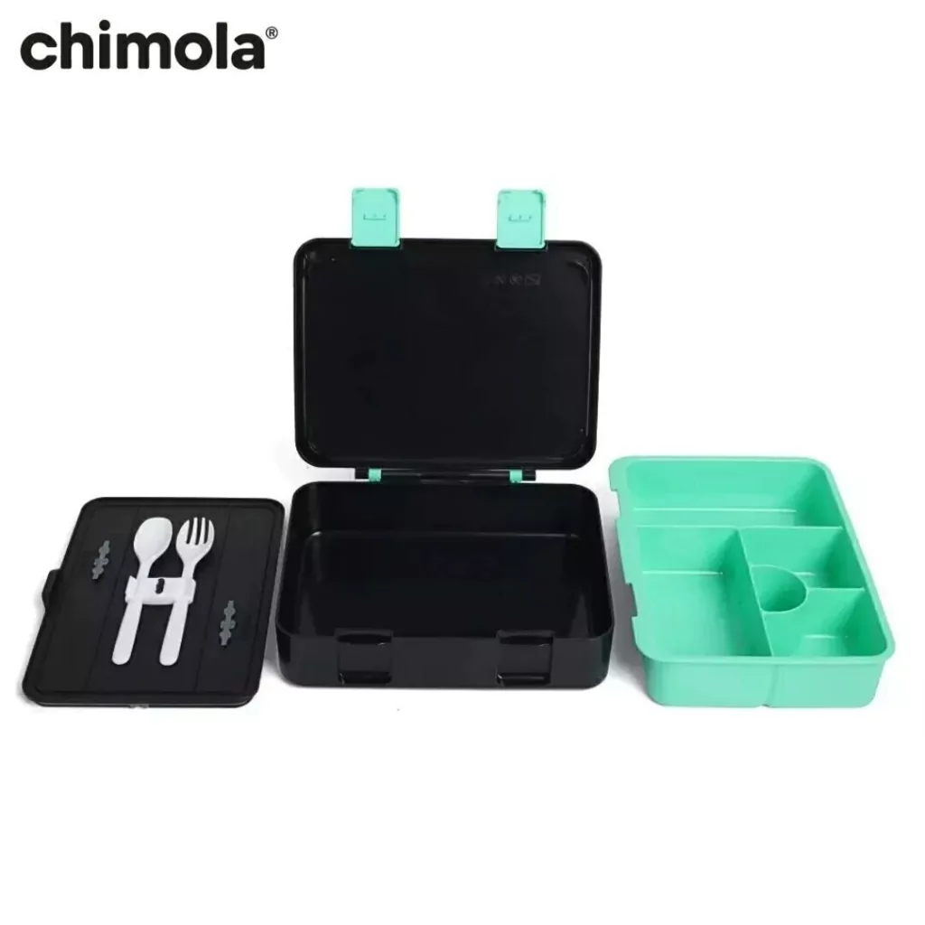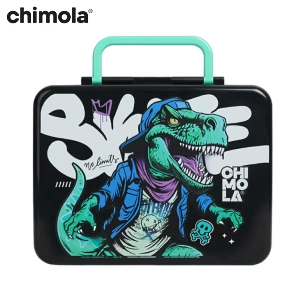 LUNCHERA NEGRA CON CUBIERTOS CHIMOLA DINOSAURIO 22X17CM (BTS) (BT135)