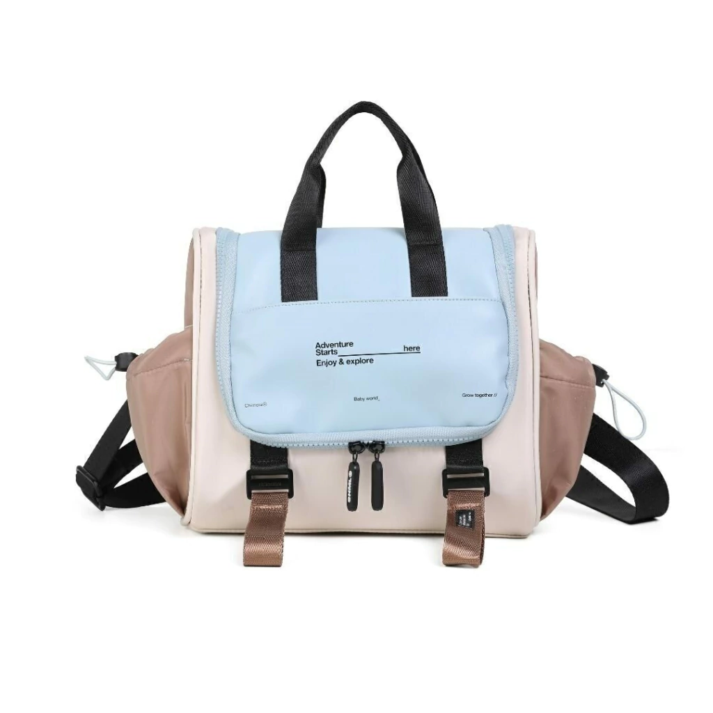 LUNCHERA TERMICA CHIMOLA DE TELA ENGOMADA 3 CIERRES CON BOLSILLOS 28X24X15 COLOR CELESTE (BP109B)