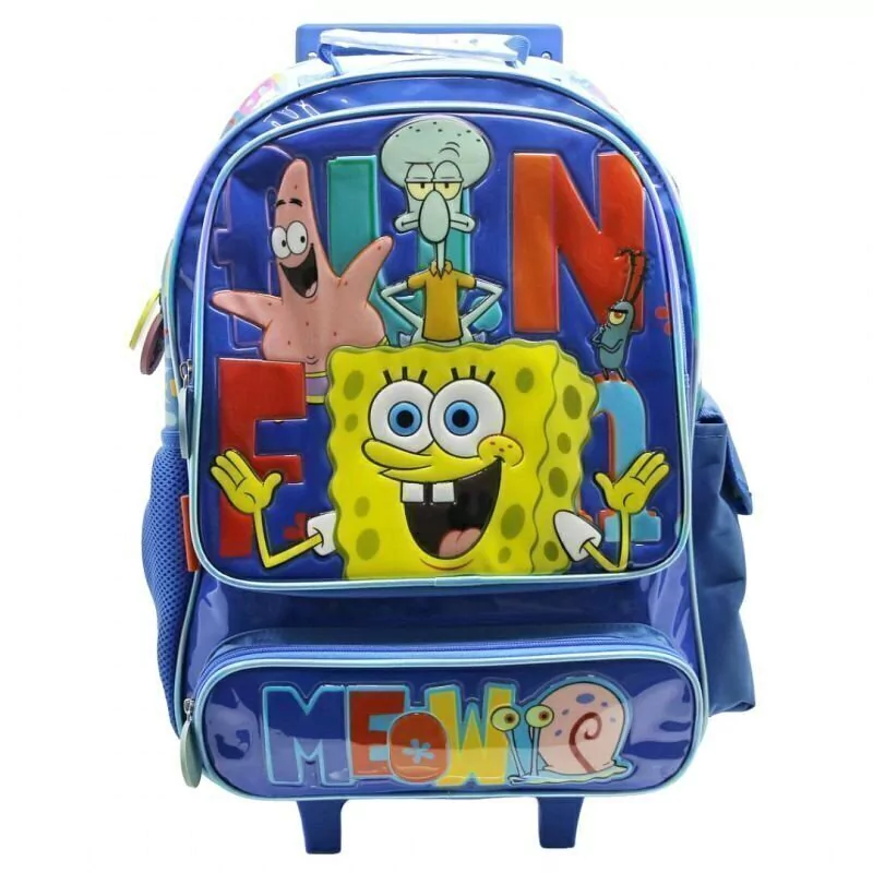 MOCHILA CARRO CRESKO BOB ESPONJA 3 CIERRES 18 PULGADAS 45X35X18CM PRECIO UNITARIO (BTS) (BJ301)