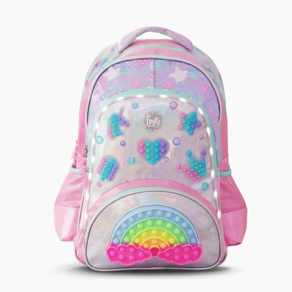 MOCHILA FOOTY ARCOIRIS POP IT LUZ LED 4 CIERRES 18 PULGADAS 45X35X22CM COLOR ROSA (BTS) (F6303B)