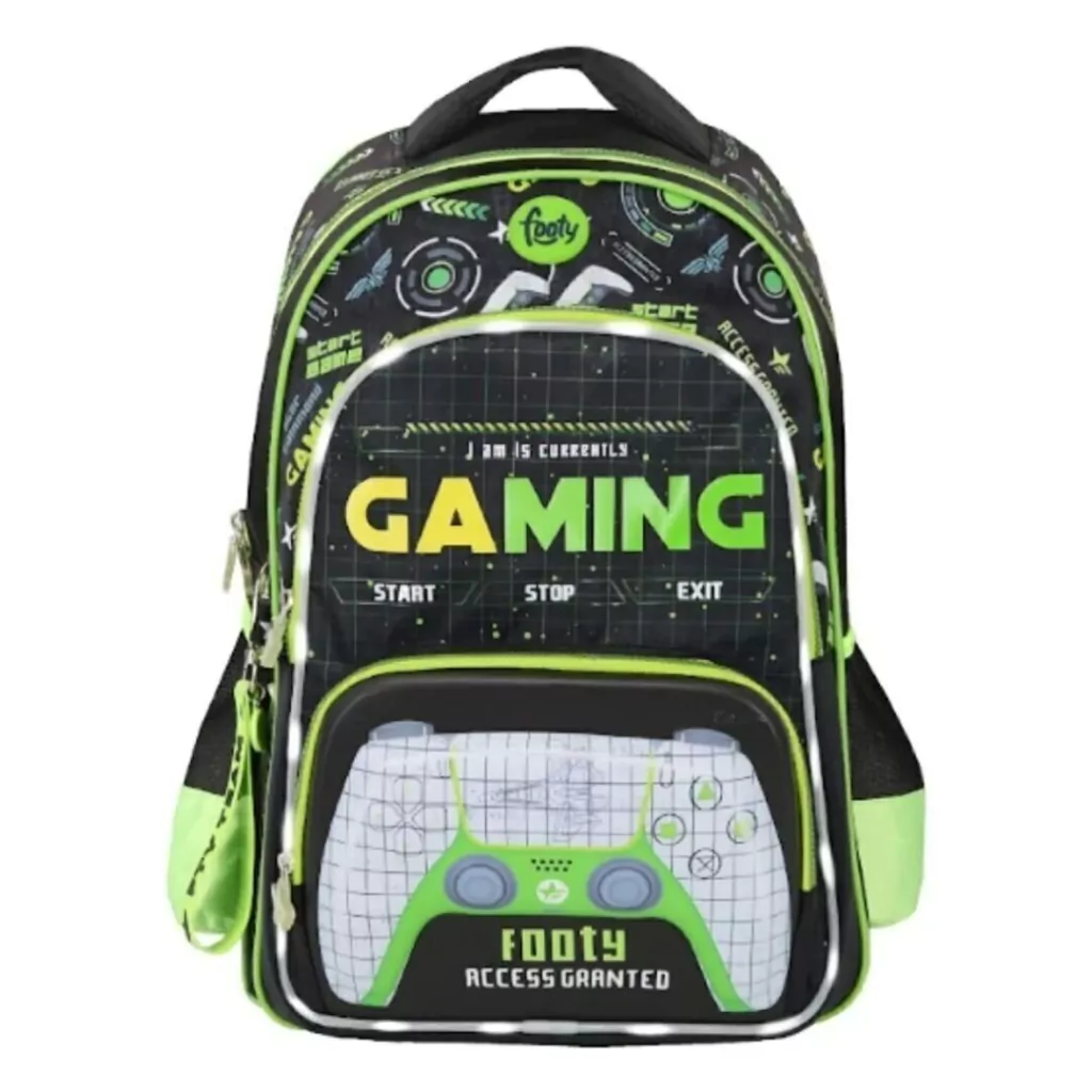 MOCHILA FOOTY DE ESPALDA GAMER CON LUZ LED 4 CIERRES 18 PULGADAS 45X35X15CM COLOR VERDE (BTS) (F3263A)