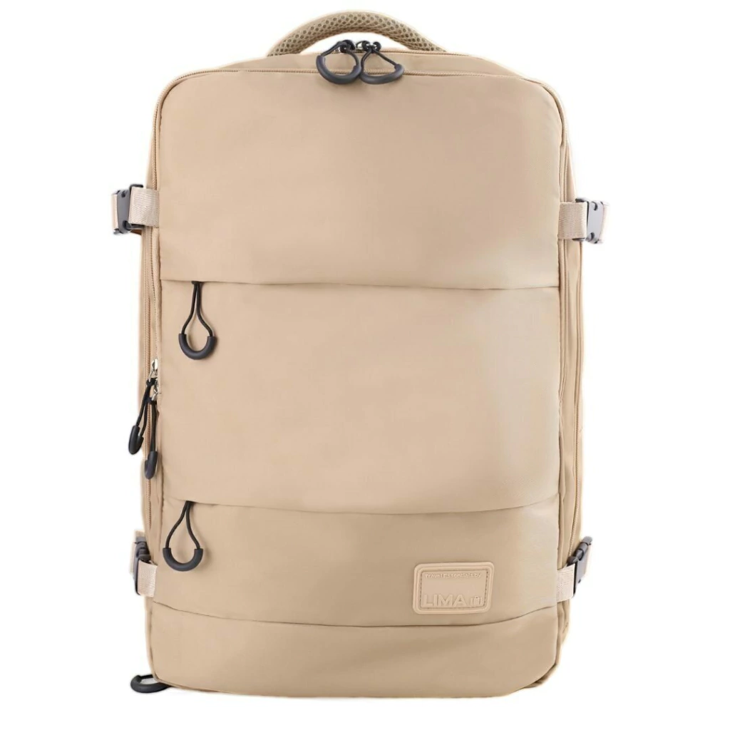 MOCHILA KIRA LIMA DE NYLON 5 CIERRES 50X35X20 COLOR CAMEL PRECIO UNITARIO (H664B)