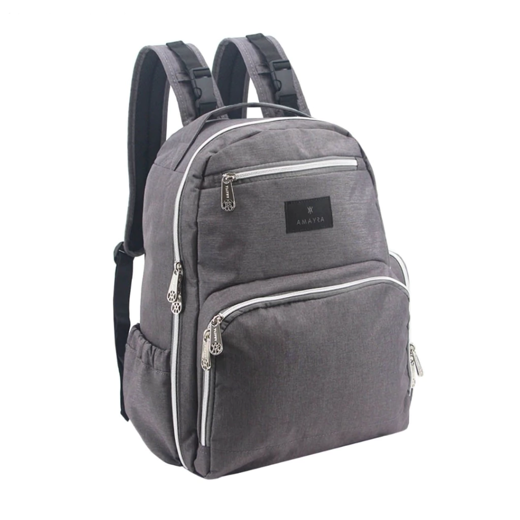 MOCHILA MATERNAL AMAYRA DE TELA CON ACCESORIOS 4 CIERRES Y BOLSILLOS 41X36X19 COLOR GRIS PRECIO (67250G)