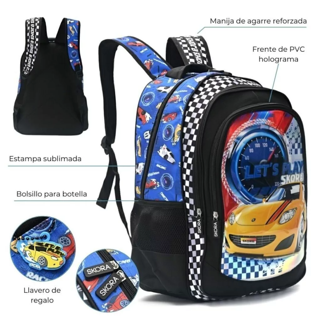 MOCHILA NEGRA SKORA AUTO 3 CIERRES 18 PULGADAS 45X32X15CM (BTS) (35410)