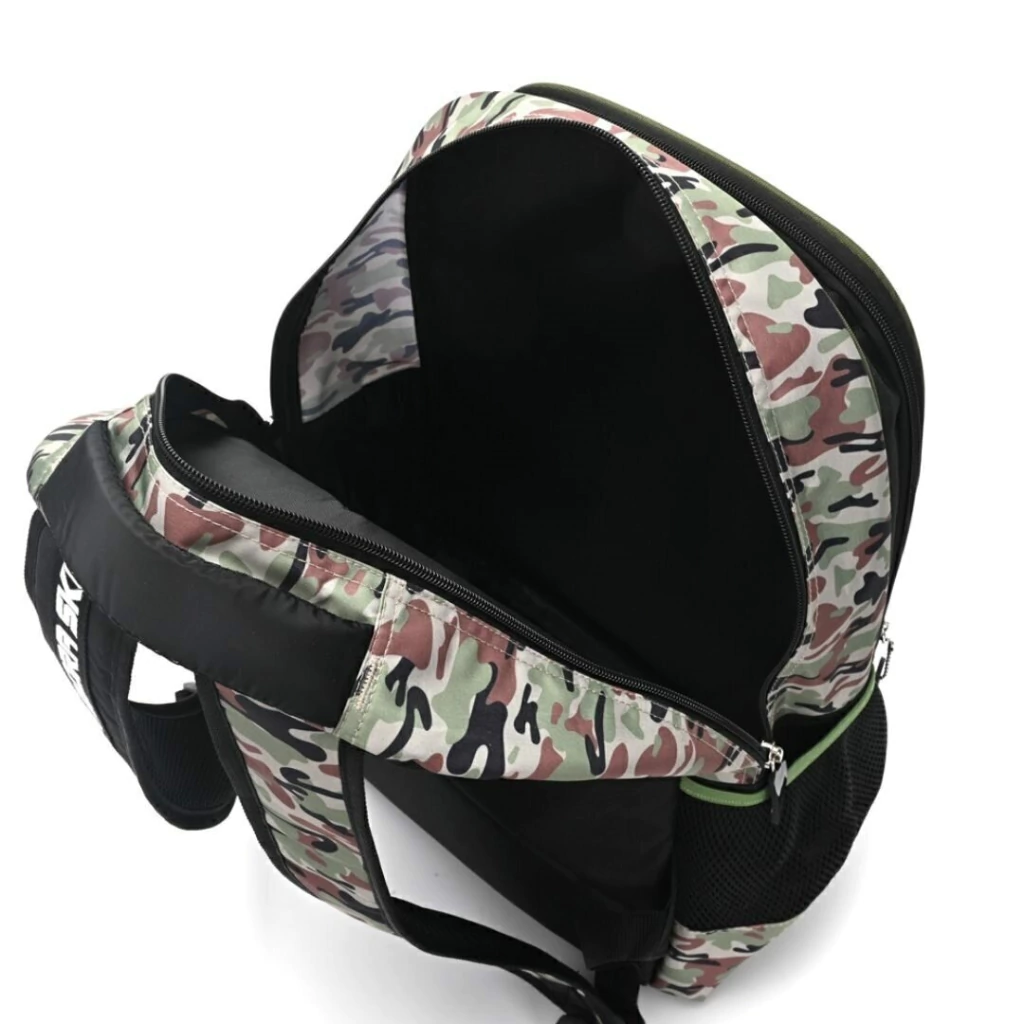 MOCHILA SKORA CAMUFLADA 4 CIERRES 18 PULGADAS 45X32X15 COLOR NEGRO PRECIO UNITARIO (BTS) (37642)
