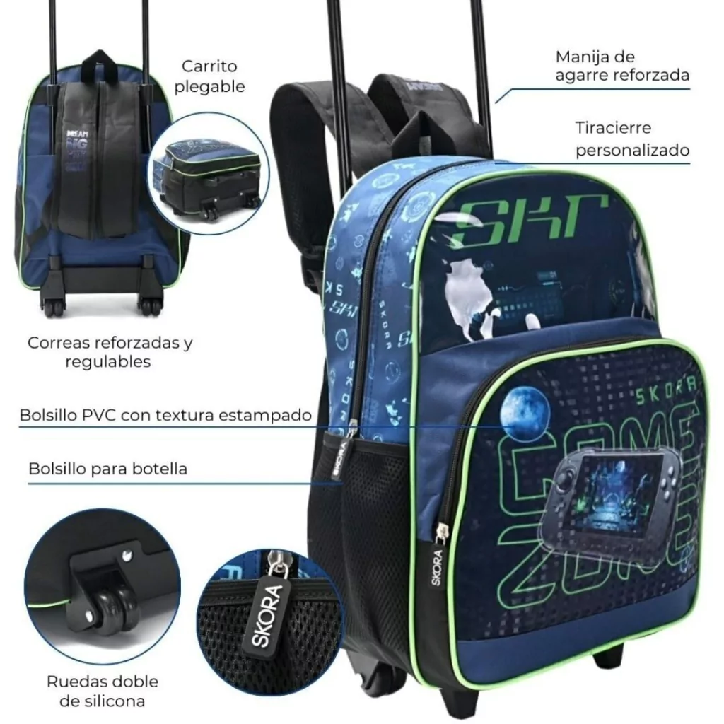 MOCHILA SKORA CARRO GAME 2 CIERRES 16 PULGADAS 40X30X17CM COLOR AZUL (BTS) (37651)