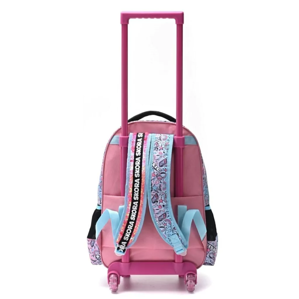 MOCHILA SKORA CARRO MUSICA 2 CIERRES 18 PULGADAS 45X35X12CM COLOR FUCSIA-NEGRO (BTS) (37593)