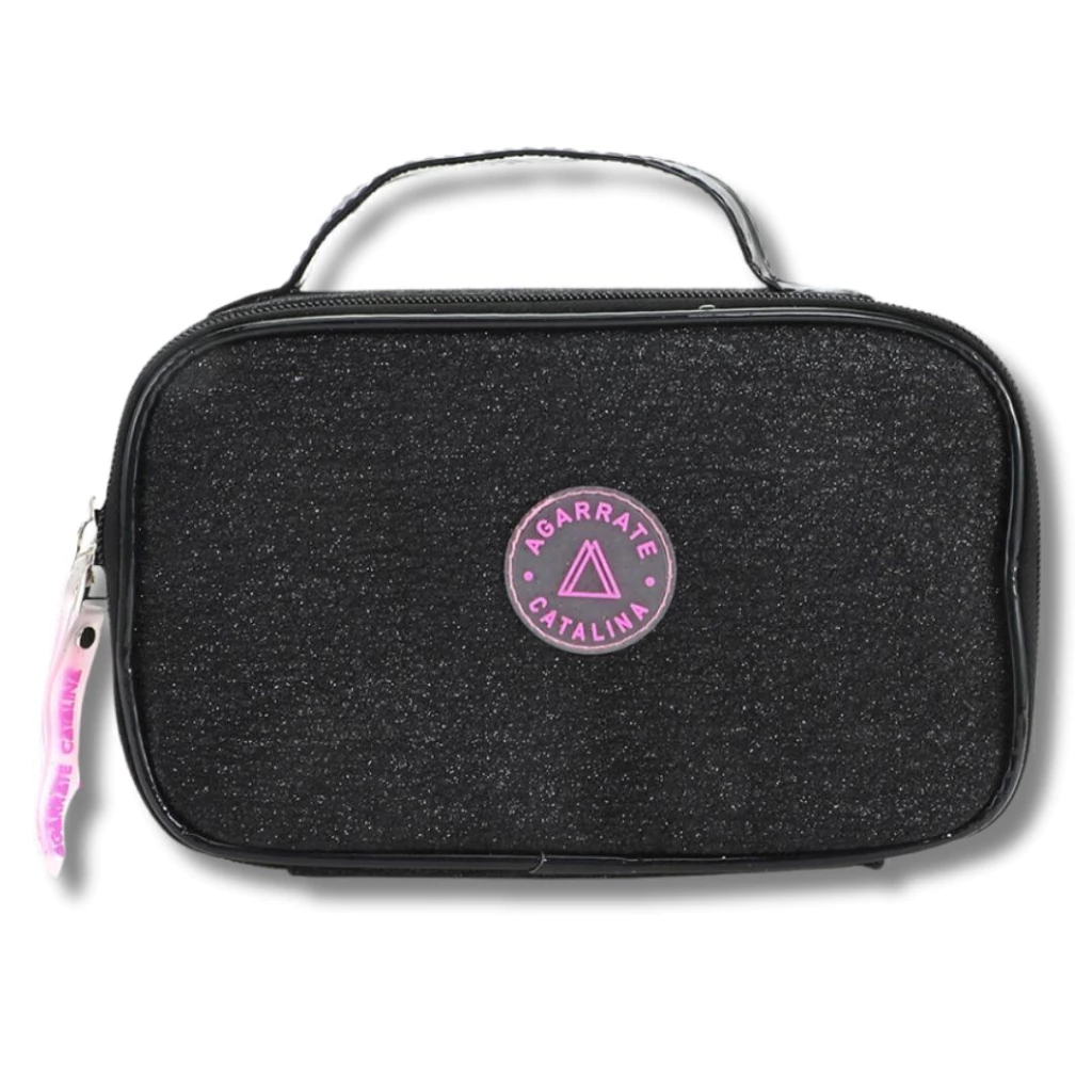 PORTACOSMETICOS AGARRATE CATALINA DE TELA GLITTER 12X20X8CM COLOR NEGRO (ACCB59A)
