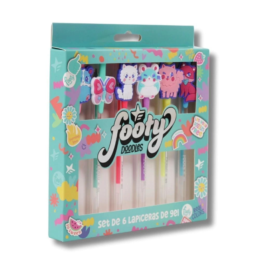 SET X6 LAPICERAS FOOTY DE GEL CON PINES EN COLORES SURTIDOS (LIB355)