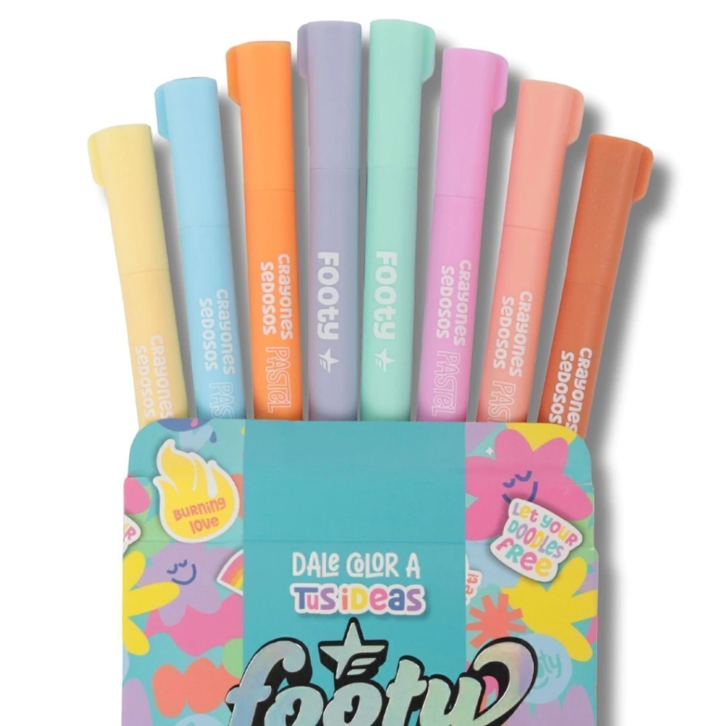 SET X8 CRAYONES FOOTY EN COLORES PASTEL SURTIDOS (LIB242)