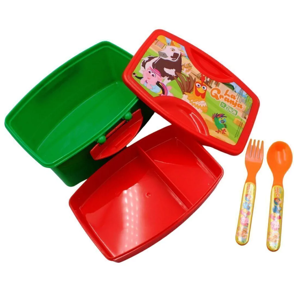 TUPPER GRANJA DE ZENON CON CUBIERTOS 2 COMPARTIMENTOS 17X12X8CM COLOR VERDE PRECIO UNITARIO (BTS) (GRANJA057)